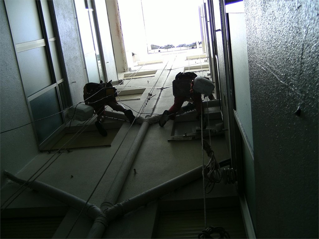 Retirada de bajantes viejas en diferentes patios de un edificio.
